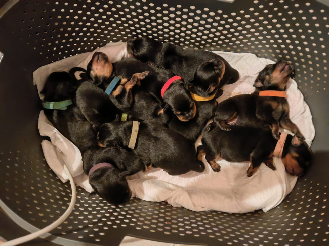 25.09.2025 13:55Šteňátkům je jeden týden. Čtyři pejsci a šest feneček, úžasně rychle roste, jsou z nich krásní, rotvajleří cvalíčci. Maminka o ně pečlivě pečuje. Už se těšíme, až příští týden začnou otevírat očička :-)