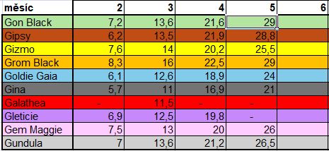 Hmotnostní tabulka štěňat 2.-5. měsíc